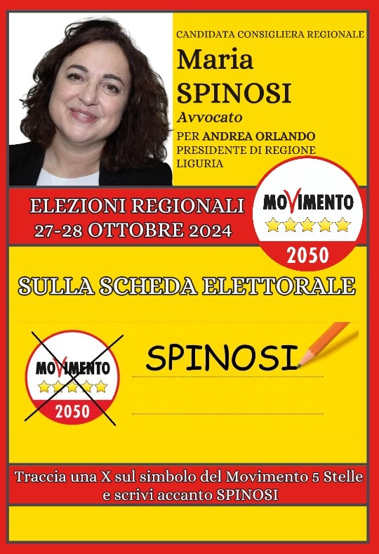 Mi chiamo Maria Spinosi e sono candidata alle prossime Elezioni Regionali del 27 e 28 ottobre 2024 come Consigliera per la Circoscrizione di Imperia